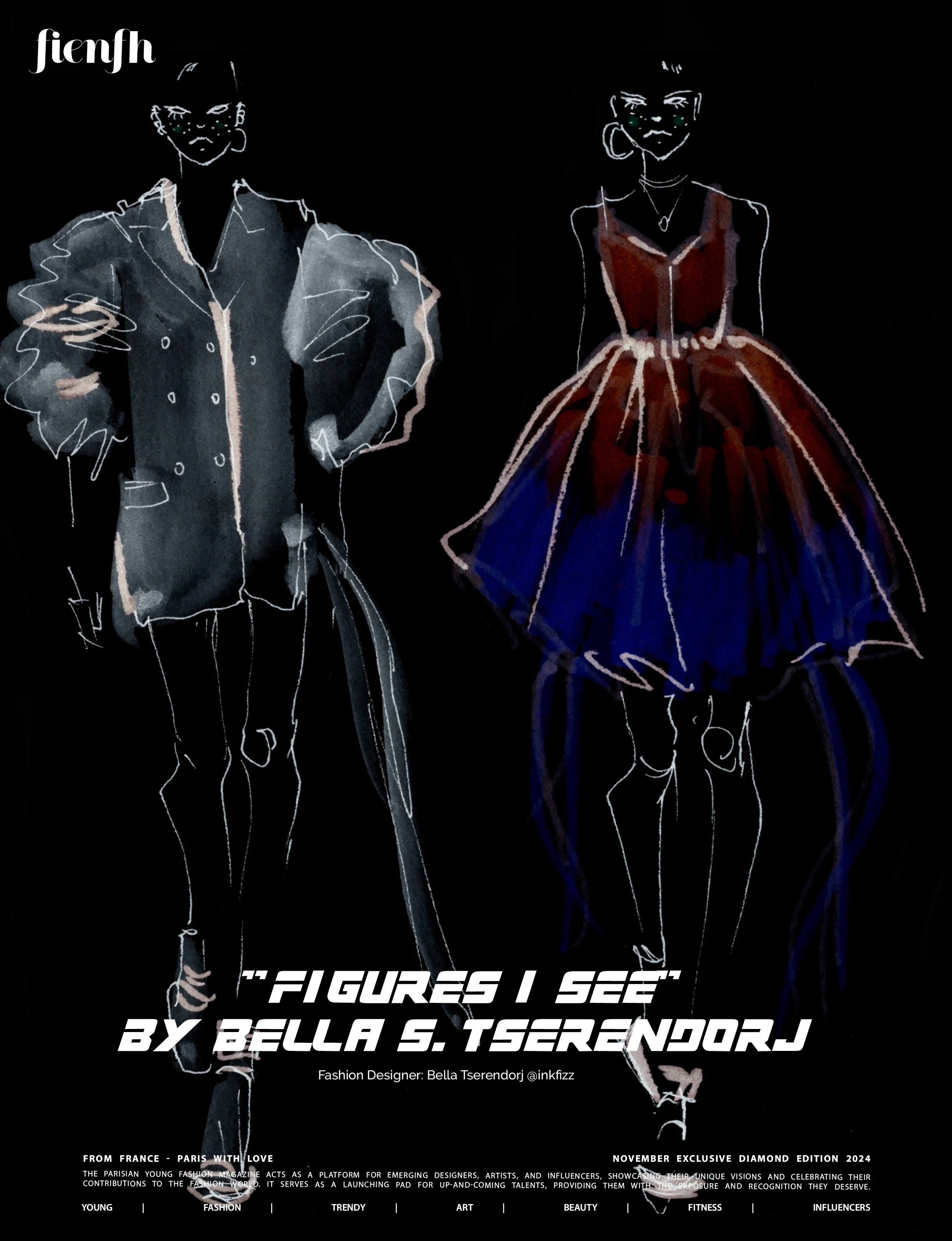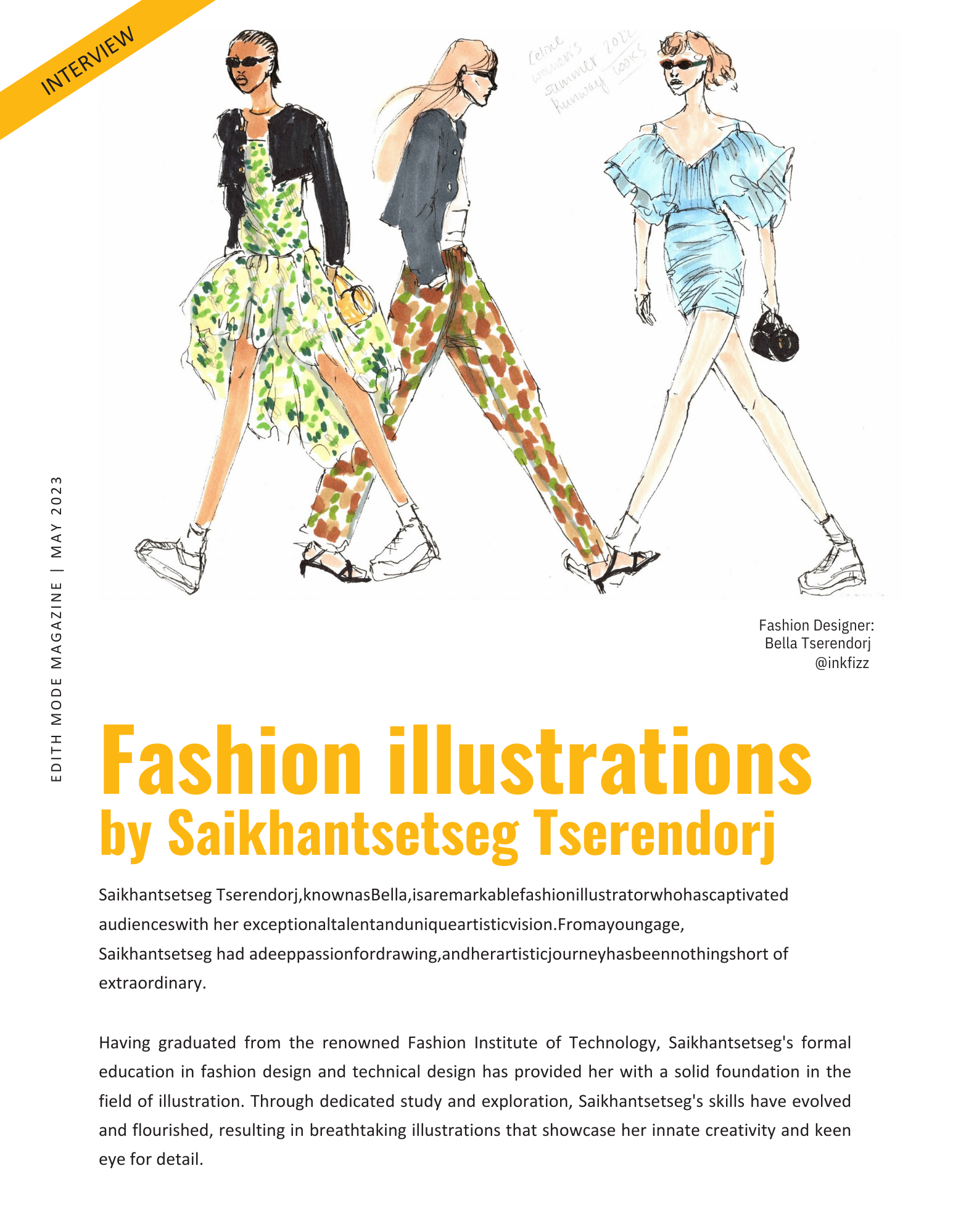 Saikhantsetseg Tserendorj (Bella) is a New York based fashion illustrator and live event sketch artist specializing in fashion-inspired, hand-drawn illustrations created on-site for brand activations, corporate events, private events, and experiential marketing campaigns. Her work has been commissioned by major clients including Fendi, YSL, Macy’s, Meta, Hilton, Kay Jewelers, and Oribe. She is also featured in numerous international fashion and art publications.